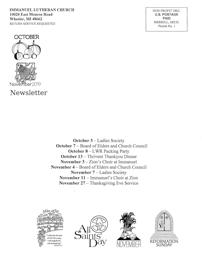 October/November Newsletter Posted bywebsiteforimmanuelOctober 6, 2019March 22, 2020Posted inUncategorizedTags:Announcements, Newsletter Below is the October/November newsletter. Share this: Click to share on X (Opens in new window) X Click to share on Facebook (Opens in new window) Facebook Related