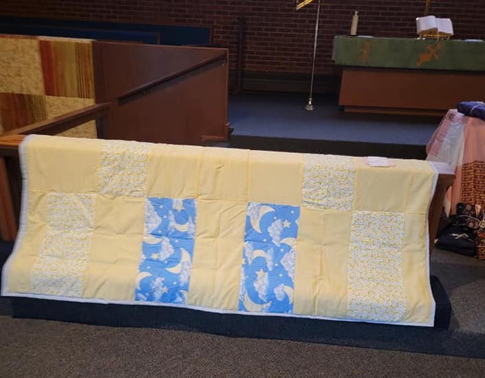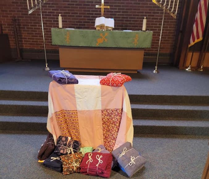These beautiful quilts were made by the quilters at Immanuel and are being donated to LWML to be sent around the world to people in need! The Health Kits, wrapped in towels, were also put together.